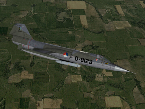 This is a NATO camo skin for the Canadian Forces CF-104. Fuel tanks are included.