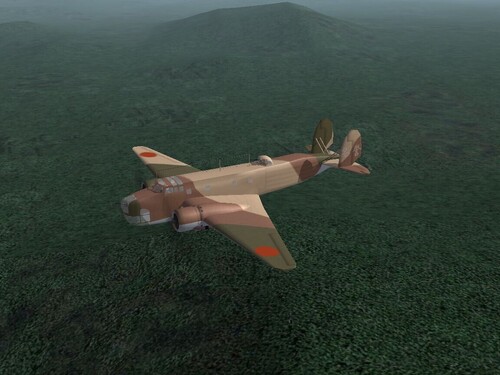 It includes 2 skins, the first for 12 Sentai as seen in Southeast Asia (Thailand) circa 1943, and the second for 98 Sentai, Phillipine Islands, for most of the war.. The skins have newly redrawn panel lines, 'interperative' rivets added (meaning I claim no historical accuracy for their placement), simulated fabric surfaces, simulated fuselage windows, plus general dirt and weathering added.