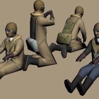 This pack contains flight crew figures designed to fit Veltro's WIP FW189, but they can be used for most any other German WW2 aircraft. There are two different pilot figures - a fighter pilot and a bomber pilot. There are also two gunner figures that - with some repositioning - 3D model guys can fit into aircraft they are working on.