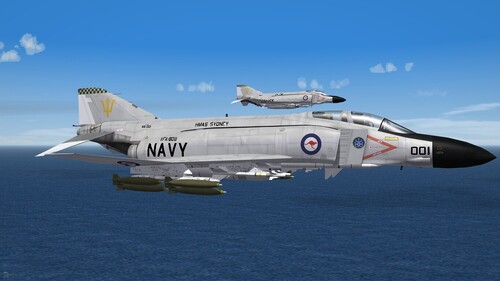 This is an F-4K Phantom II in the markings of the Royal Australian Navy. 805 and 808 Squadrons are portrayed.