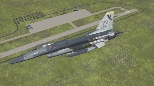 The F-16C_25 aircraft tends to pitch up rapidly resulting in a tail strike if player does not fly carefully. This problem is noted in several FMs and as far back as the Block 25 in NATO Fighters 5. There is no fix at this time although it is more immersion killer than damaging to the aircraft. Best to keep the nose down until rotation speed (varies by load) then "pop" the aircraft off the runway and climb out.