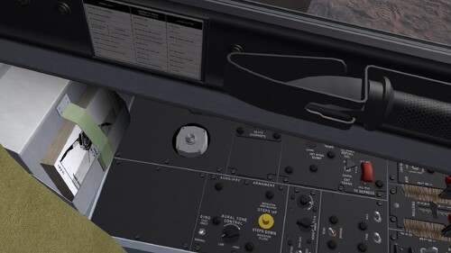 Note: From the F-4E_Kurnass_78 onwards, selecting the fuselage IRM station will activate the front right RDR light as well as the normal IRM configuration lights/ switches. A DYMO label is affixed above the light to notify the pilot.