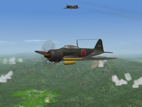 This little modification includes several small changes to the several inis and a re-skin for ArmorDave's A6M5 "Zeke" IJN fighter. Included are tweeked data, loadout, cockpit and main inis with adjustments to the latest standards. All the running lights have been re-positioned. The aircraft IS carrier-capable, already having the tailhook.