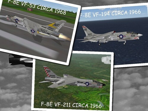 This second skinpack contains 3 F-8E Navy Squadrons for MF's F-8E: