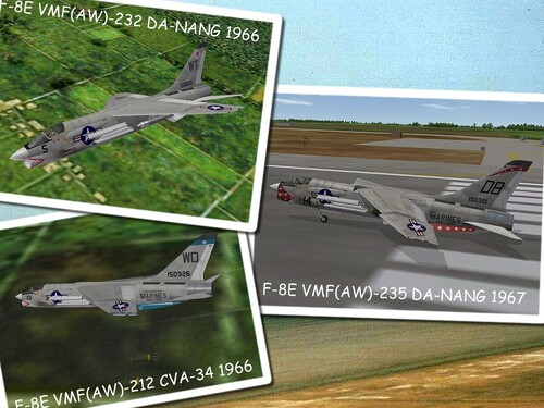 Here's the third skin pack for the TMF F-8E. I depicts the 3 missing USMC units used in the stock campaign flying the F-8E: