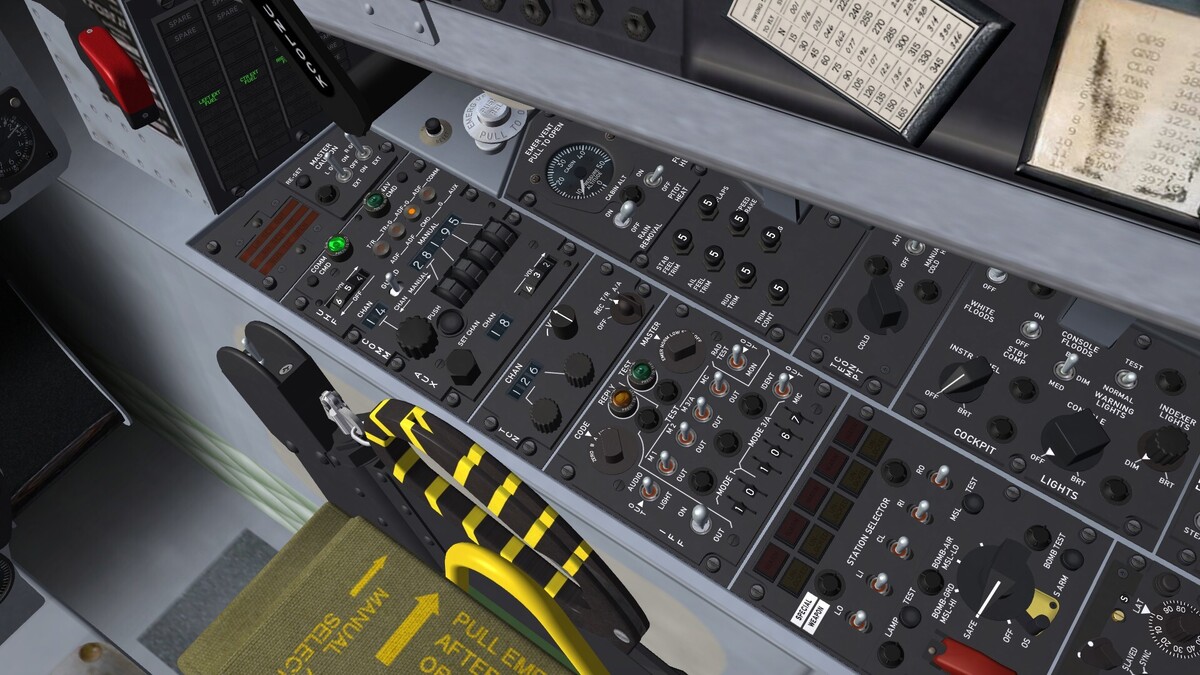 Note: From the F-4E_Kurnass_78 onwards, selecting the fuselage IRM station will activate the front right RDR light as well as the normal IRM configuration lights/ switches. A DYMO label is affixed above the light to notify the pilot.